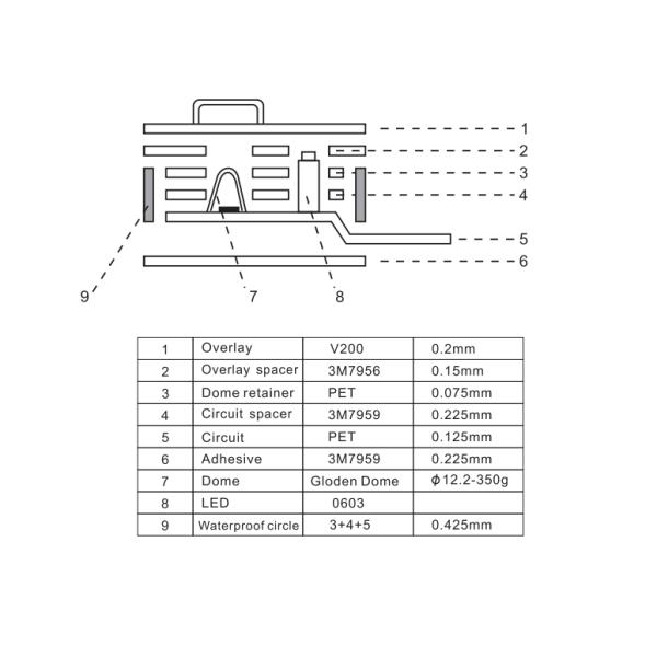 Sealing Layers: Waterproof membrane switches use specialized sealing layers, often made of silicone rubber or polyurethane, to create a barrier against water ingress.